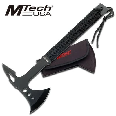 15 Inch overall Zombie Killer Tactical Throwing Axe Hatchet Black Cord Wrapped Handle. Includes nylon sheath.