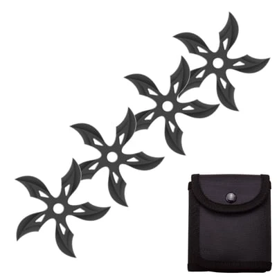 4 PC Set Black Ninja Throwing Stars Anime Shuriken Knife Curve Blade Five-Sided