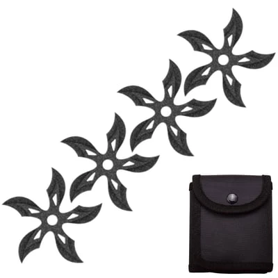 4 PC Set Stonewash Finish Ninja Throwing Stars Shuriken Knife Curve Blade Five-Sided