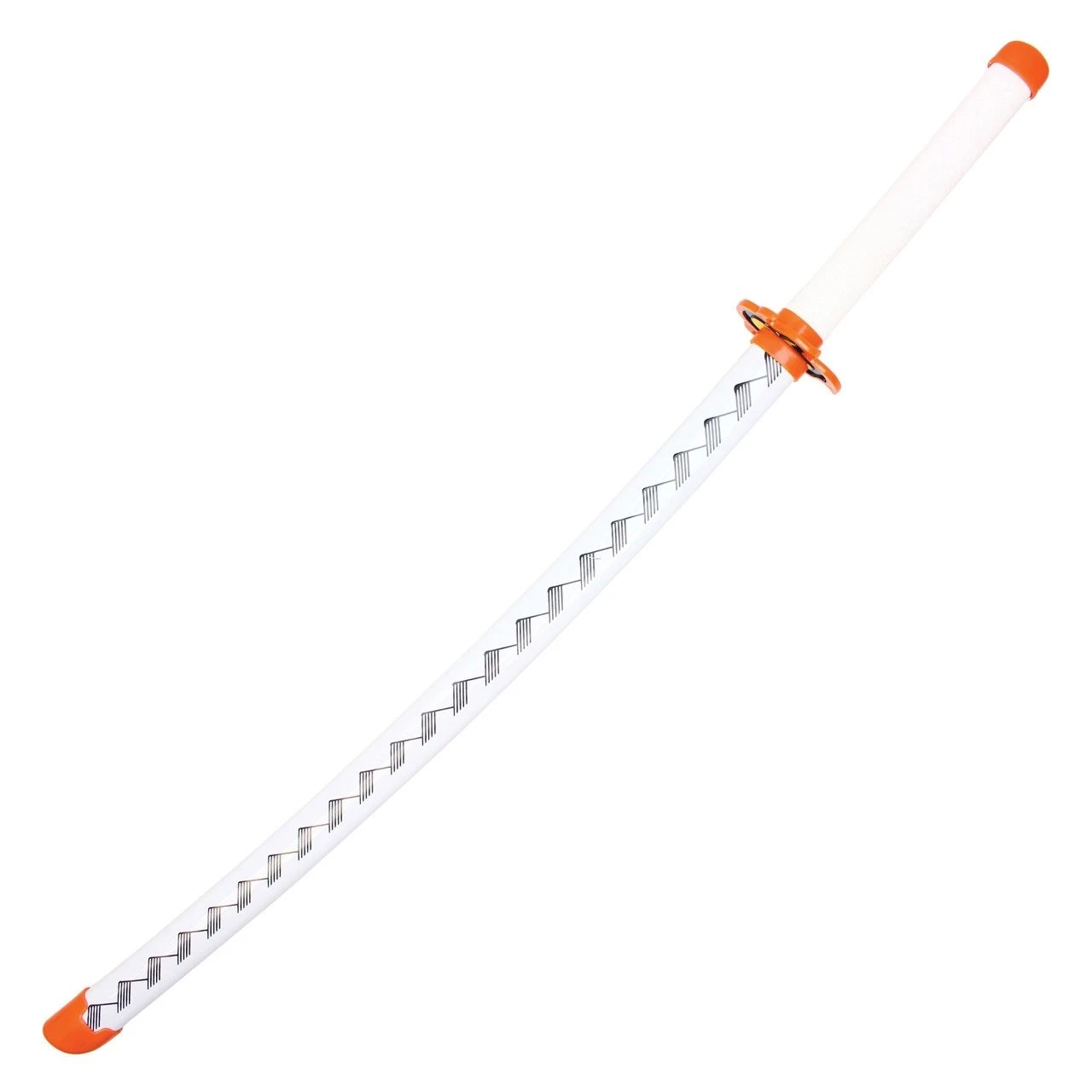 Light the fires of passion with the explosive strength of this katana from the hit anime. The orange and black pyromorph guard represents the unyielding morals and indomitable will of the wielder, which shines brighter even than the flames of their attacks. Just be sure to avoid trains while using it.
