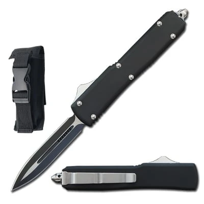 This OTF has a blade that is made from stainless steel in a spear point style with a two-tone finish. The dual action mechanism allows you to deploy and retract the blade with a silver slider.
