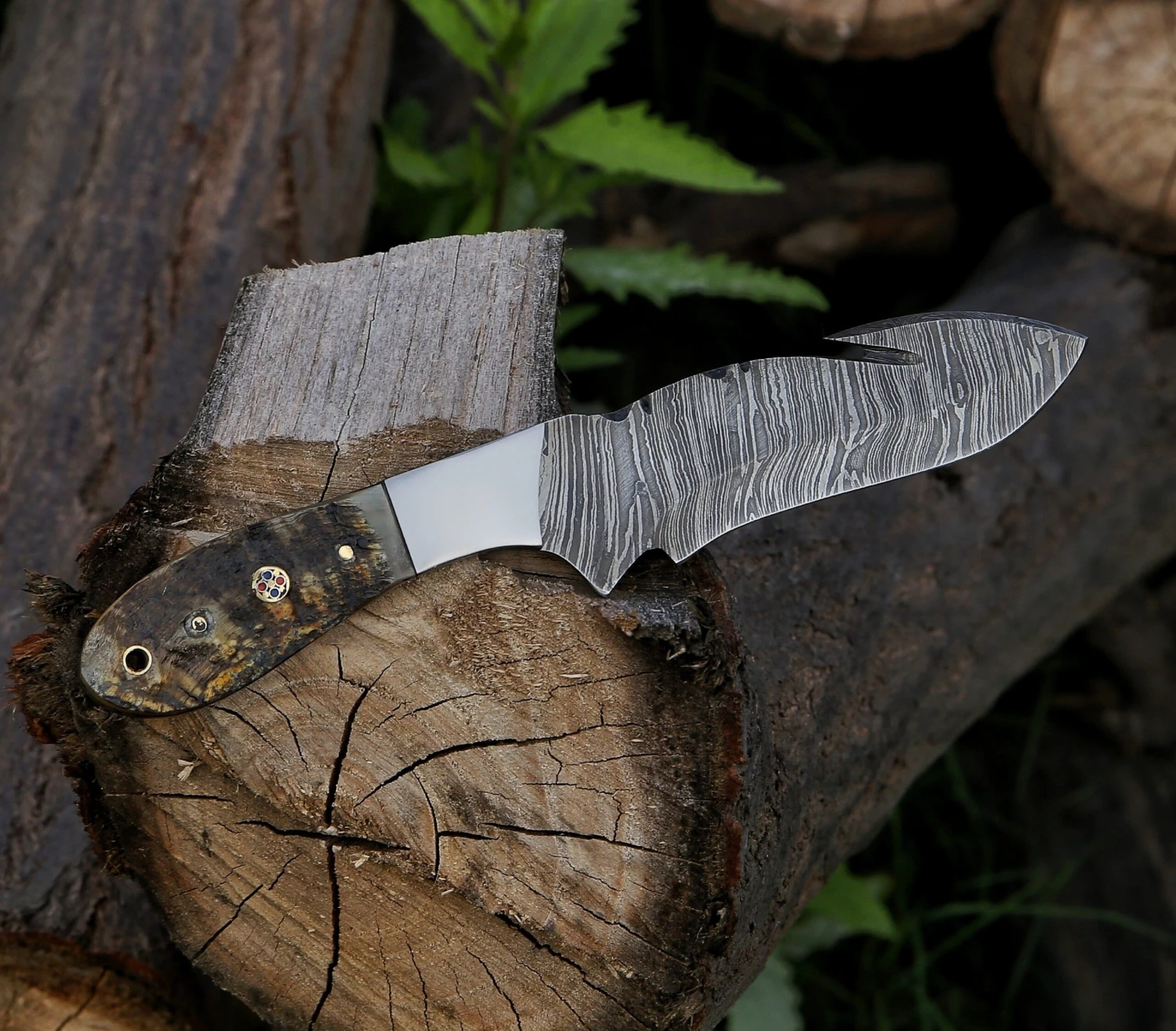 9.9″ Damascus Steel Custom Handmade Horn Handle Hunting Gut Hook Knife