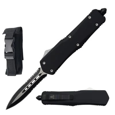 9″ Black Tactical Recon Automatic Serrated OTF Combat Knife