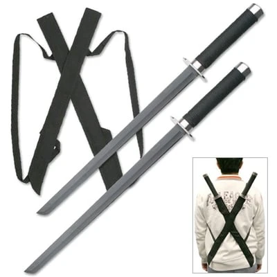 2-PC Ninja Sword Set with Cast Metal Guards and Pommels. 25-1/5″ overall dual blades.