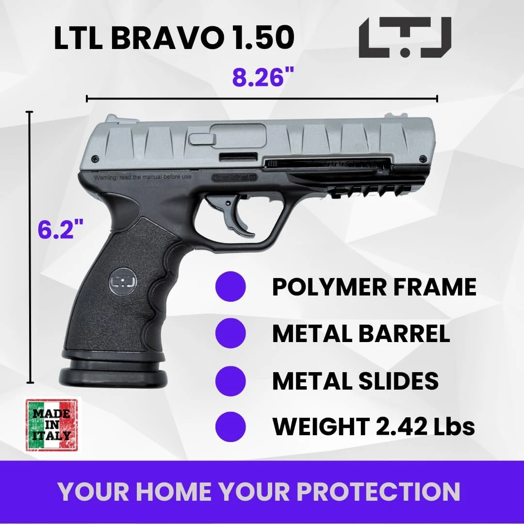 Shoots .50 caliber rubber balls, pepper balls, dust balls, chalk balls, and paintballs. Powder Balls give you a more realistic training experience; Rubber Balls are great for training and practice.