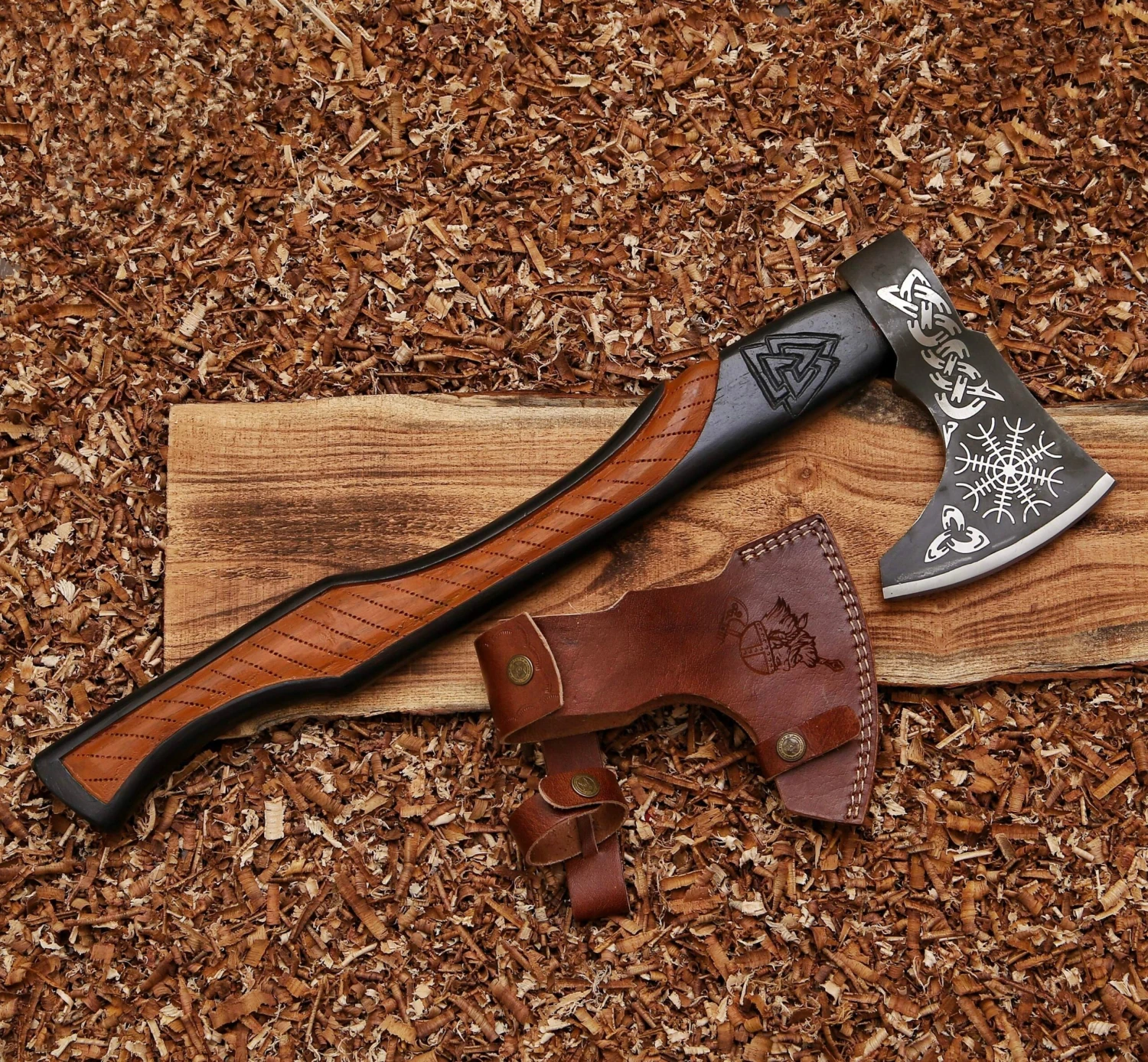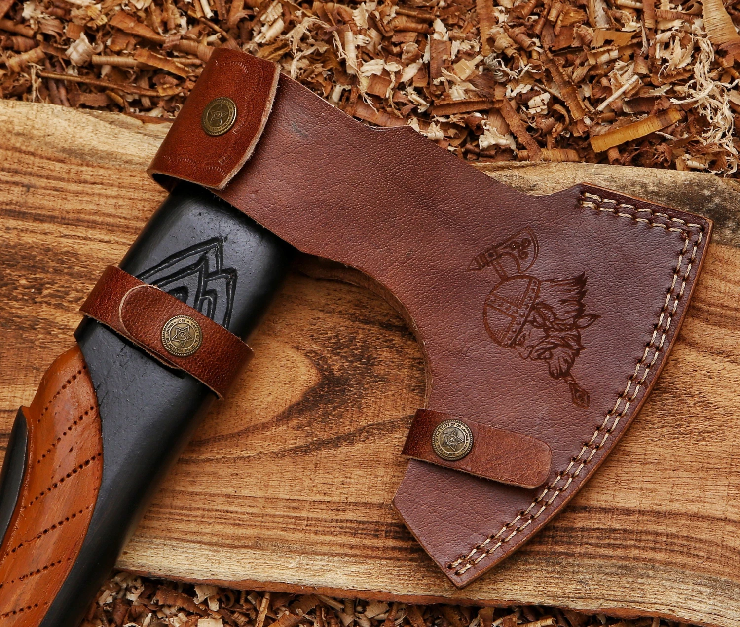 The carbon steel viking axe was the weapon most used by the Vikings. Itβs a very popular product in Viking history. As viking blog is available on the web which explains the article. This axe is handcrafted. This is a very high-quality product whose head is carbon steel and handles material is ash wood wrapped with leather. Comes complete with a complimentary sheath made from quality genuine rich brown leather, and has snap closures as well as a belt loop for hands-free carry.