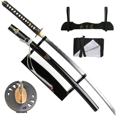 This is the Hattori Hanzo Demon sword you have been waiting for Fully functional and accurate to the movie Hand forged full tang Demon sword from Kill Bill. The blade, made of high carbon steel, sports the genuine insignia on the tang. The Kill Bill Demon Emblem is engraved on one side of the blade. The handle is wrapped in black cotton braid (ITO). On each side of the handle there is a dragon Munuki (Ornament), with the same design as in Kill Bill. The scabbard (Saya) is of high quality hardwood with piano finish exterior and 2 Demon emblems are engraved on the Fuchi (Collar).