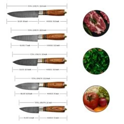 Hand Forged Damascus Steel Chef’s Knife Set Of 5 Kitchen Gift Knives