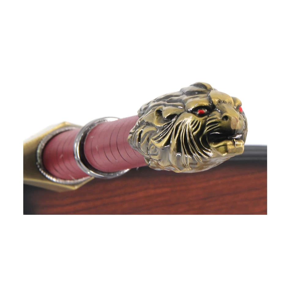 Details matter very much in this case – but not to us here. The Blade is stainless steel, guard and pommel are cast metal. This beautiful display sword comes with a wooden display wall plaque.