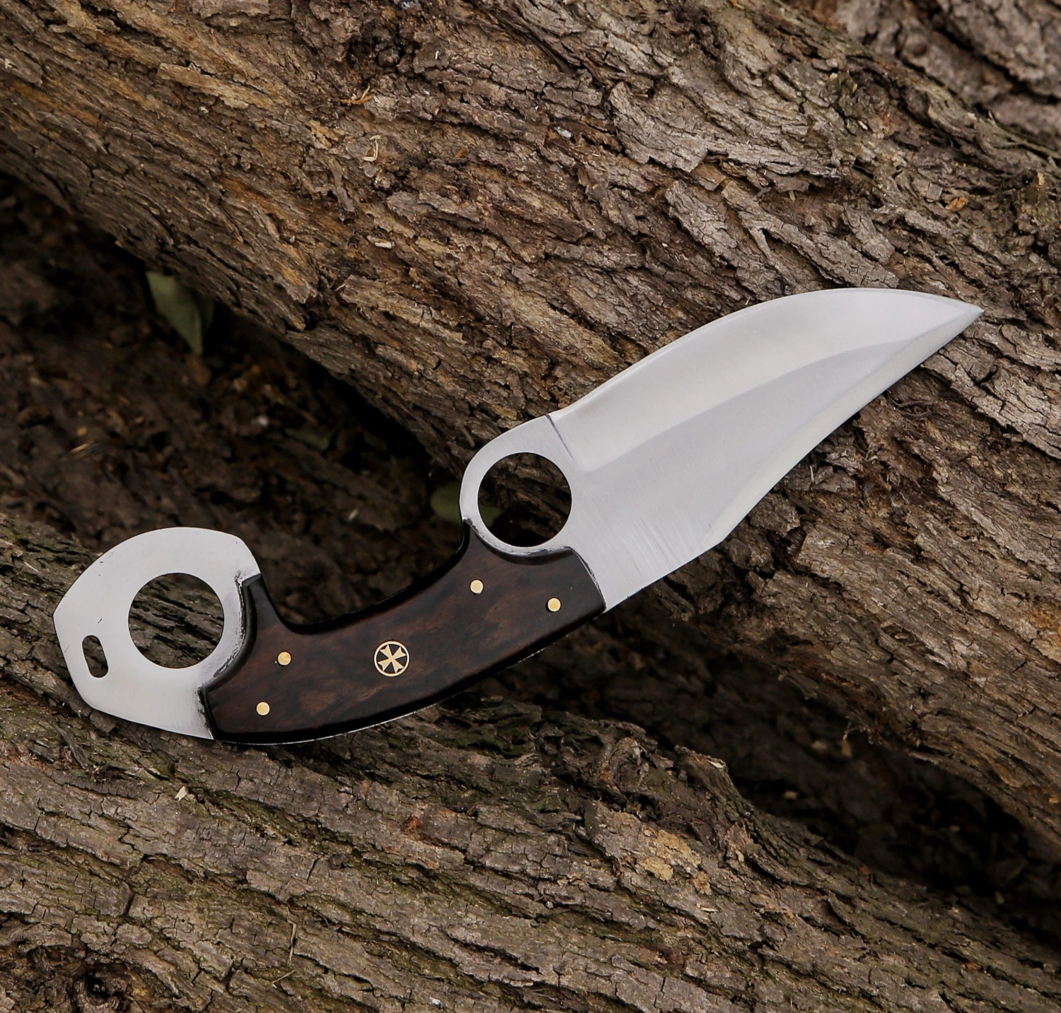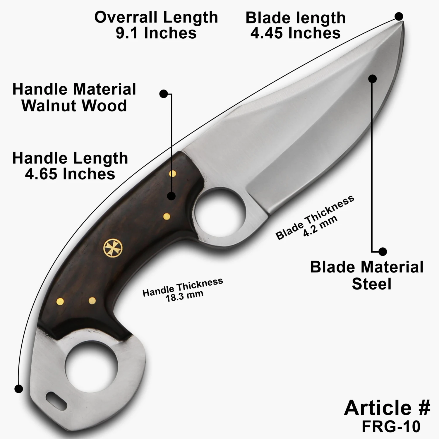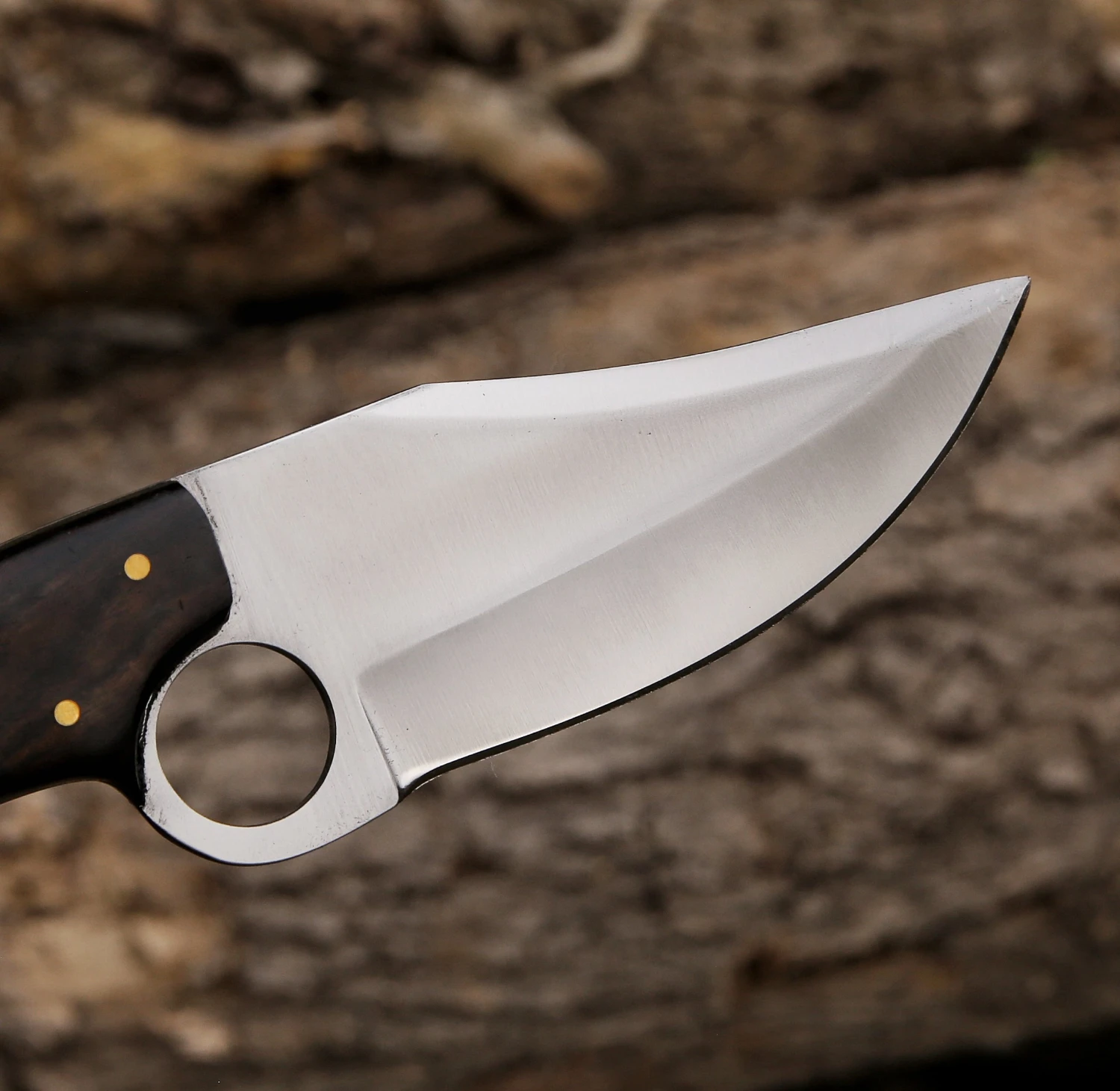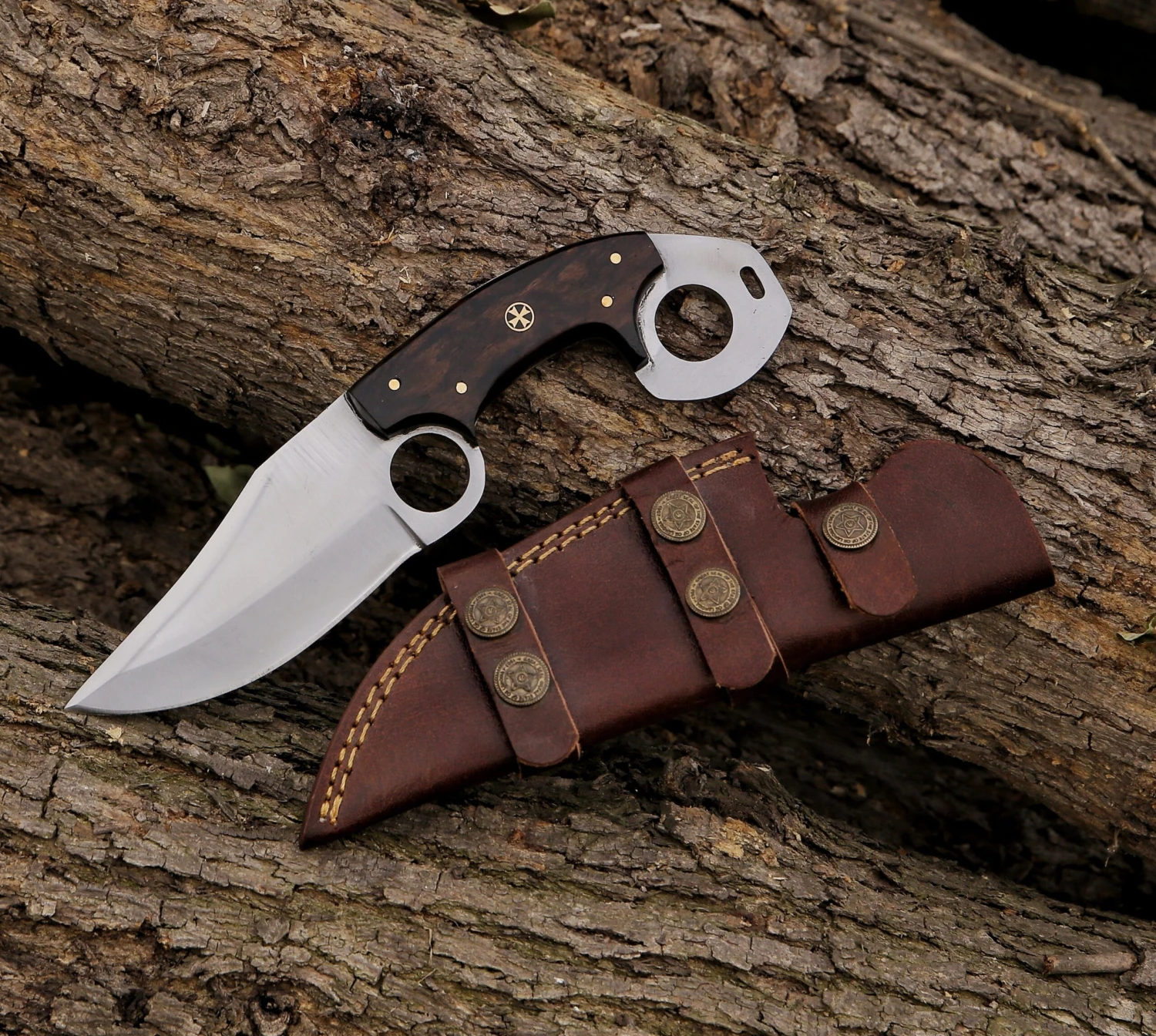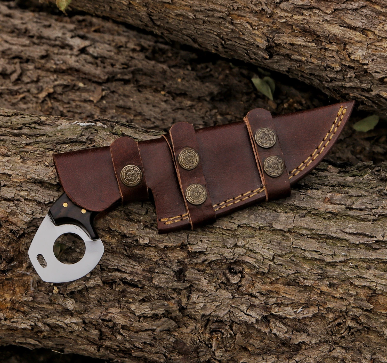 This beautiful everyday carry combat fixed blade knife feels great in your hand and is suitable for Outdoor Survival, Camping, and any cutting task. Great multipurpose tool for indoors or outdoors. Our high-end steel custom handmade well-balanced hunting knife is hand-forged. A genuine leather sheath is included. It has been hand sewn and stained. This sheath has belt loop so you can take this knife along when you are on the go!