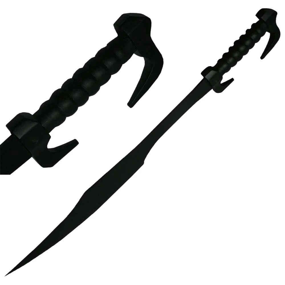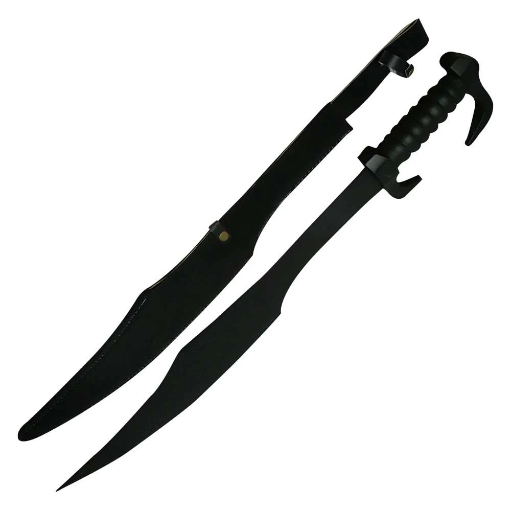 Iconic in blade profile and hand guard pattern, this Spartan sword is similar to Greek and Roman designs. All stainless steel with metal hand guard and satin black finish. Full sized each piece is handmade and may contain slight variation. Comes with the leather sheath with belt loop.