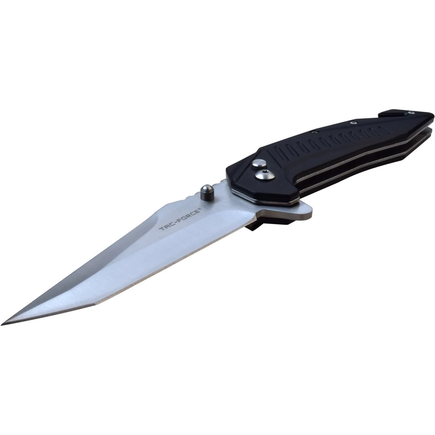 Tac Force POCKET KNIFE with tanto blade. The tactical knife has assisted opening knife mechanism which opens the blade in a fast action. The knife is 8.35 inches open length with blade length of 3.6 inches long. The tactical knife rescue handle has pocket clip, glass breaker and seat belt cutter.