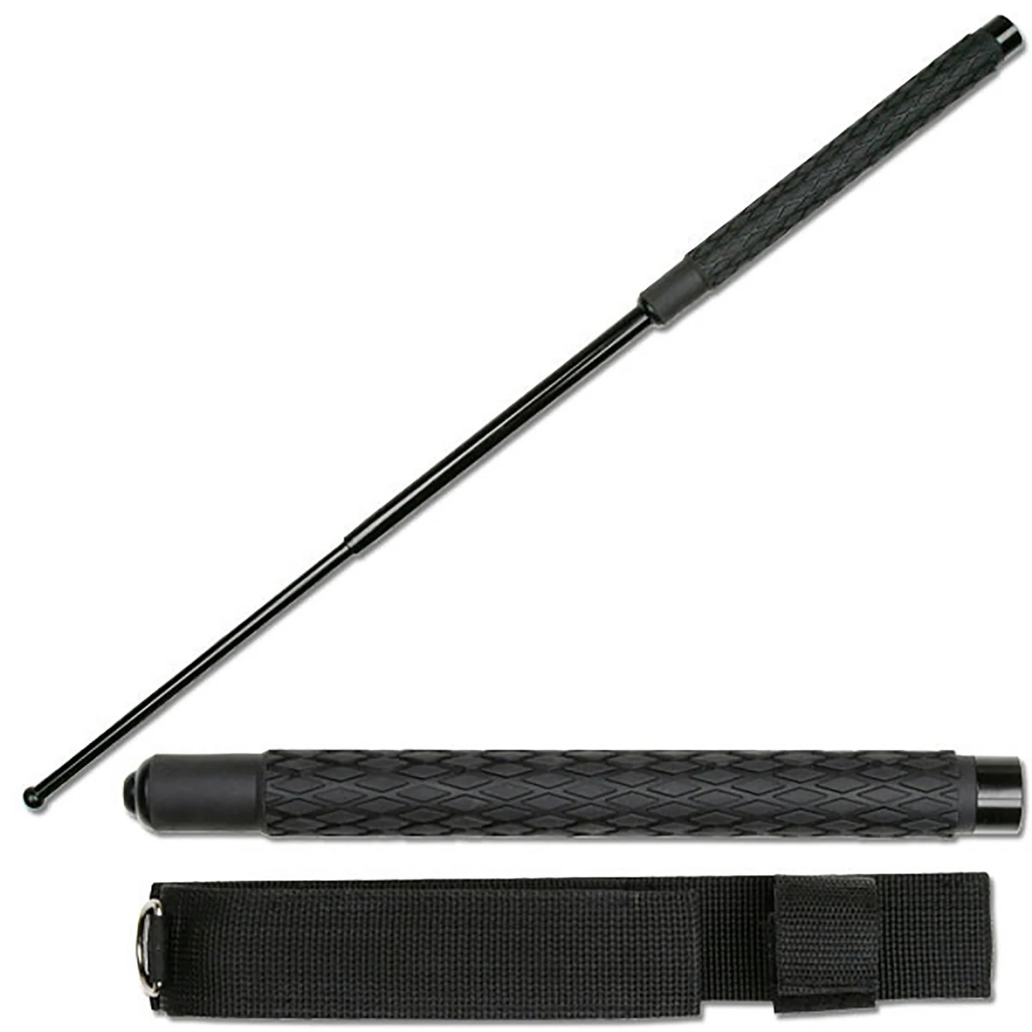This solid steel baton expands to 32 inches with just a flick of the wrist. Comes with a rubber covered handle for easy gripping and a FREE heavy-duty nylon holster for easy carrying.